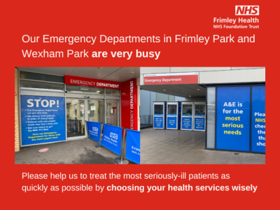 Health bosses are reminding the public to only attend emergency departments at Frimley Park Hospital and Wexham Park Hospital in the event of serious injury or life threatening illness.With hospitals at Frimley Park and Wexham Park only able to provide a ‘Christmas Day’ level of service during the current national strike action by the BMA, hospital doctors who are still working ...