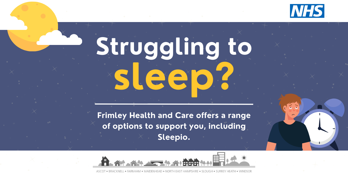 Sleepio is a leading tool, backed by international research and recommended by the National Institute for Health and Care Excellence (NICE), that is clinically proven to help improve insomnia. Frimley Health and Care is currently offering it to our residents free of charge.