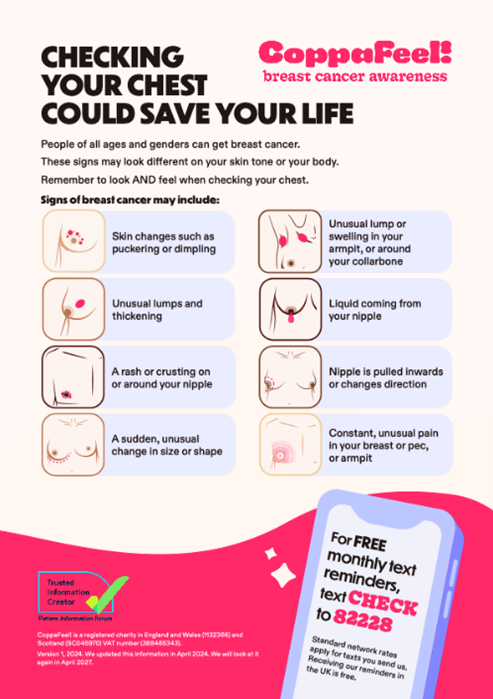 CoppaFeel! breast-cancer-info-and-advice resources – includes posters, waiting room slides, and leaflets. Also check their Instagram for regular content.