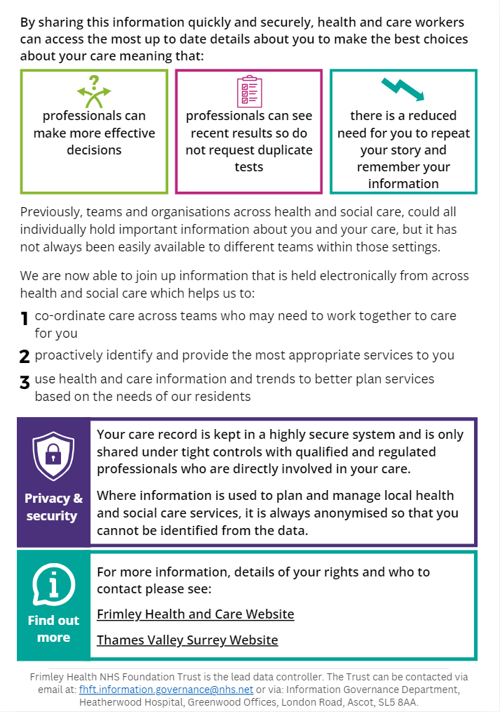 You can also find other useful documents which provide more information for communicating with staff and the public on the Thames Valley and Surrey Care Records website: