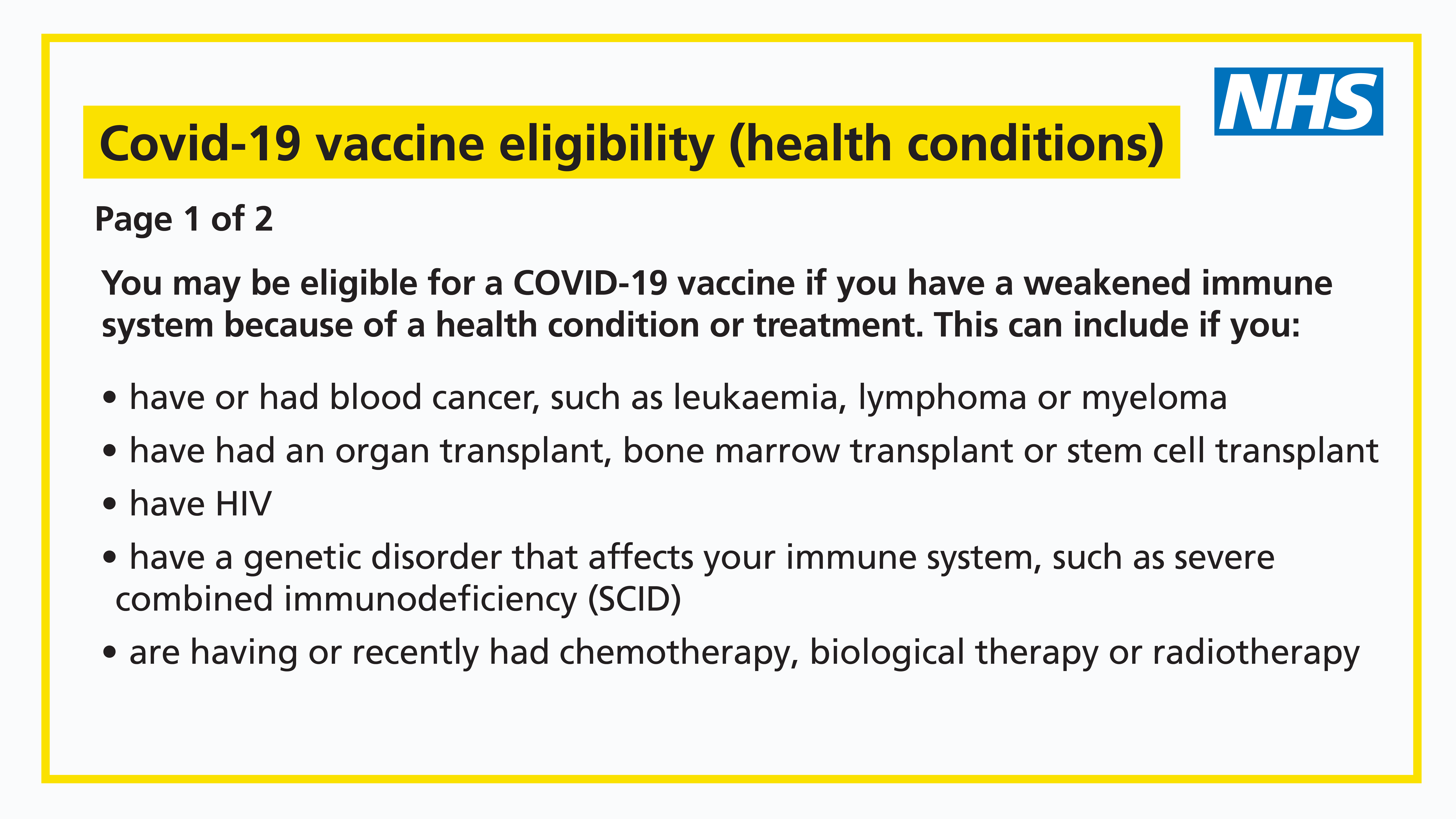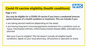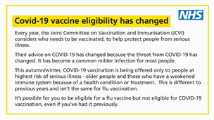 From 1 October 2025, the NHS will offer vaccines for flu and COVID-19 to the following groups of eligible patients: