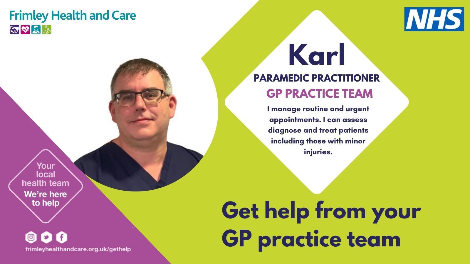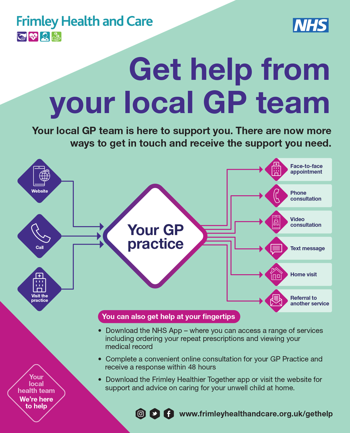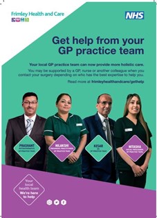 Helping local people to understand the different ways that they can access support from their GP practice team and who they might see for their need is a key priority for Frimley Health and Care and for NHS England.
