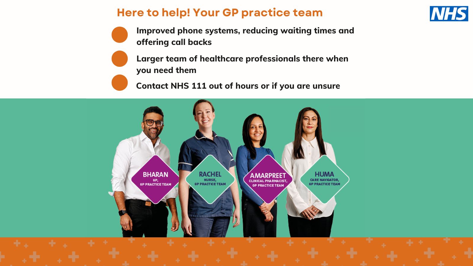 · There is now a larger team in general practice to support you